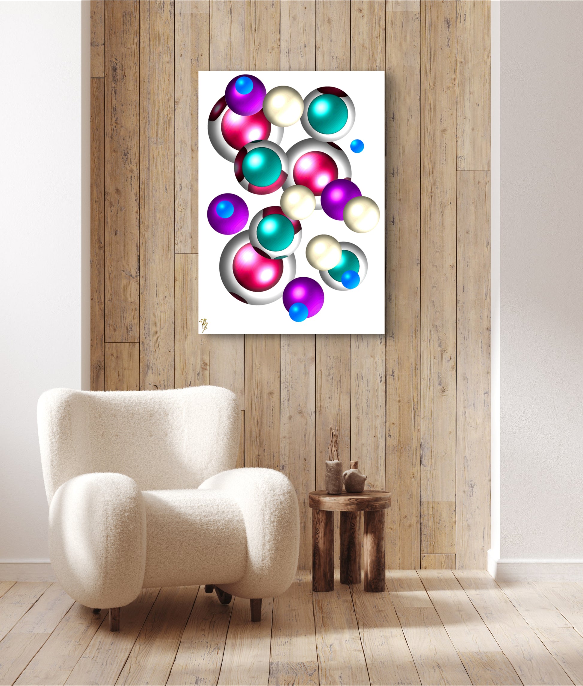The Falling Marbles Collection delves into the concept of weightlessness through the suspension of solid circular shapes, enhanced by complementary, bold colour schemes, aiming to uplift the spirit and cultivate serenity amidst chaos.